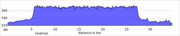 Habremos recorrido 34,6 kilómetros de dificultad baja, con un desnivel máximo de 295 metros y de tiempo estimado de 5 horas caminando.