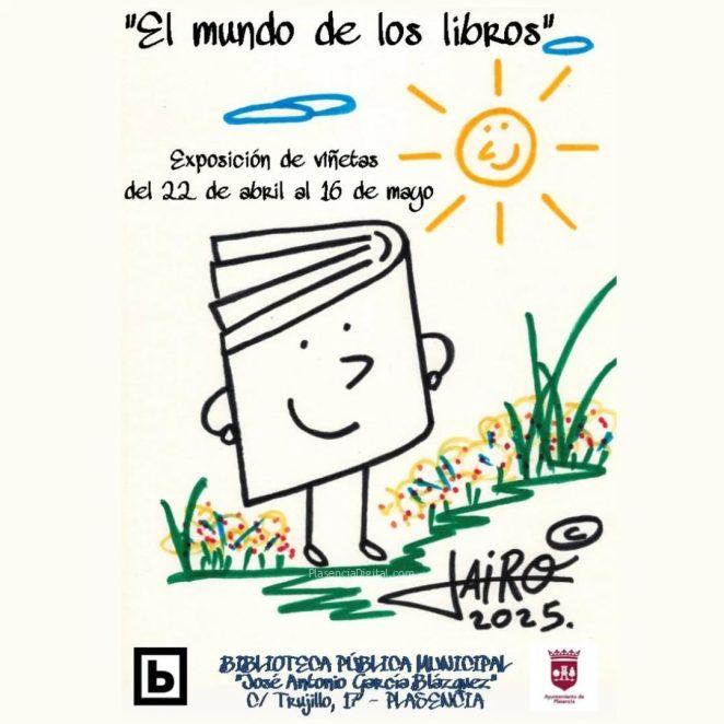 La primera es «El mundo delos libros», una exposición de viñetas de Jairo Jiménez, pintor, ilustrador y dibujante, en la que nos hará entrar en el mundo de los libros a través de sus viñetas. Esta exposición estará disponible del 22 de abril al 16 de mayo de 2025.