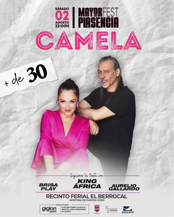 Camela nos trae su gira «+ de 30», ya nos acompañó en concierto en las ferias de Plasencia en el año 2023. King África también actuó en Plasencia en las ferias del año 2017.