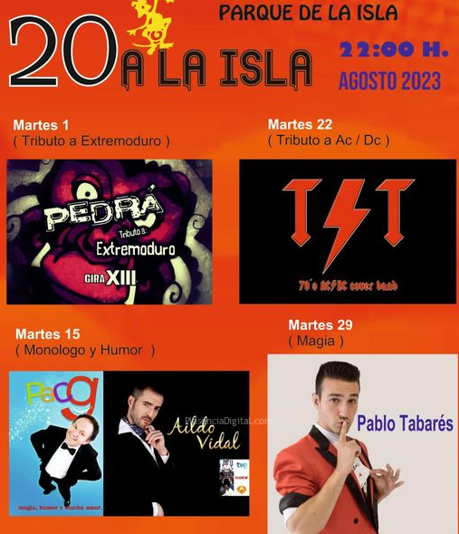Un año más se pone en marcha el programa de verano «20 a la Isla» con actuaciones cada martes del mes de agosto, excepto el Martes Mayor (8 de agosto), …