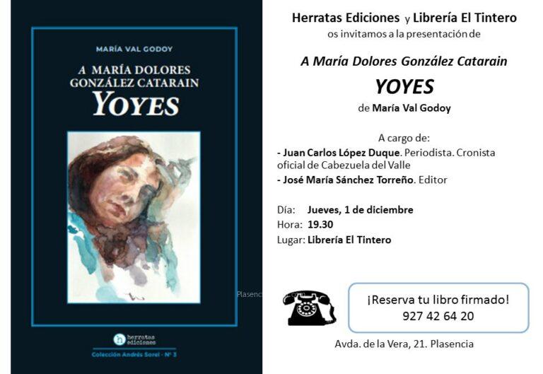 El jueves, 1 de diciembre en la Librería El Tintenro de Plasencia se presentará el libro de María Val Godoy «A María Dolores González Catarain, Yoyes». Seráa las 19:30 horas, …