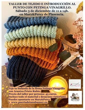 El sábado, 3 de diciembre en el espacio Mary&Percy de la librería La Puerta de Tannhäuser de Plasencia tendrá lugar un taller de tejido e introdución al punto con Arantxa …