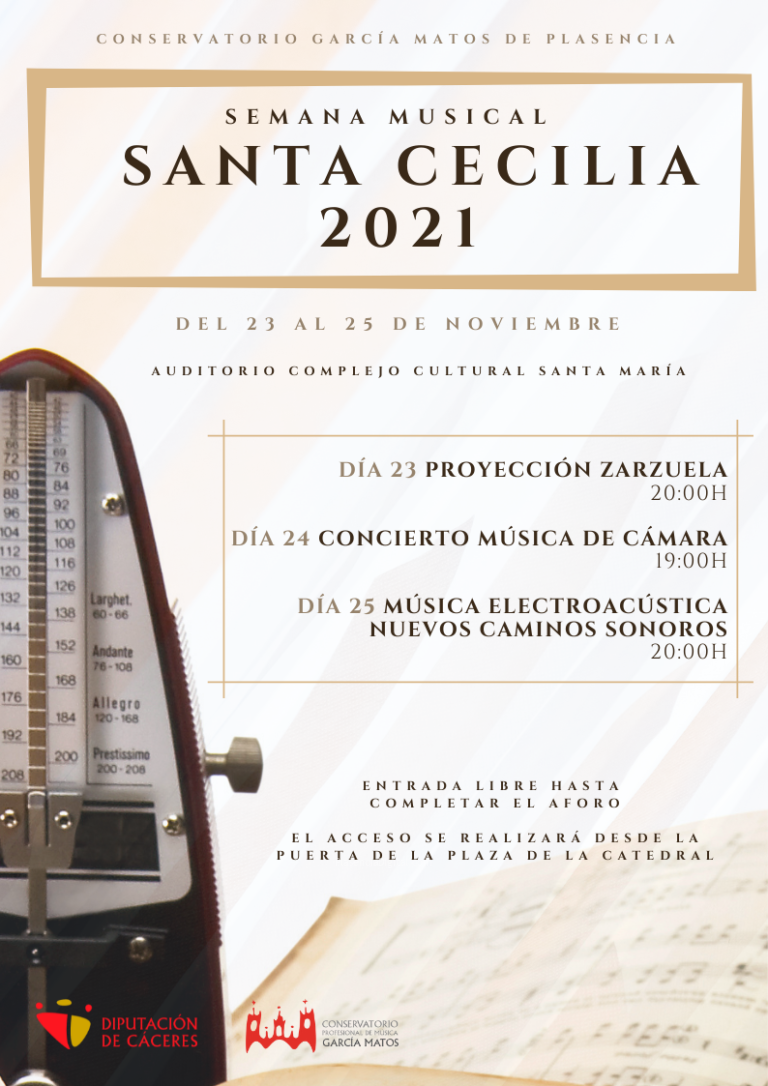 Del martes, 23, al jueves, 25 de noviembre se desarrolla en el Complejo Cultural Santa María la Semana musical Santa Cecilia 2021. Programación del ciclo de conciertos: Martes, 23: En …