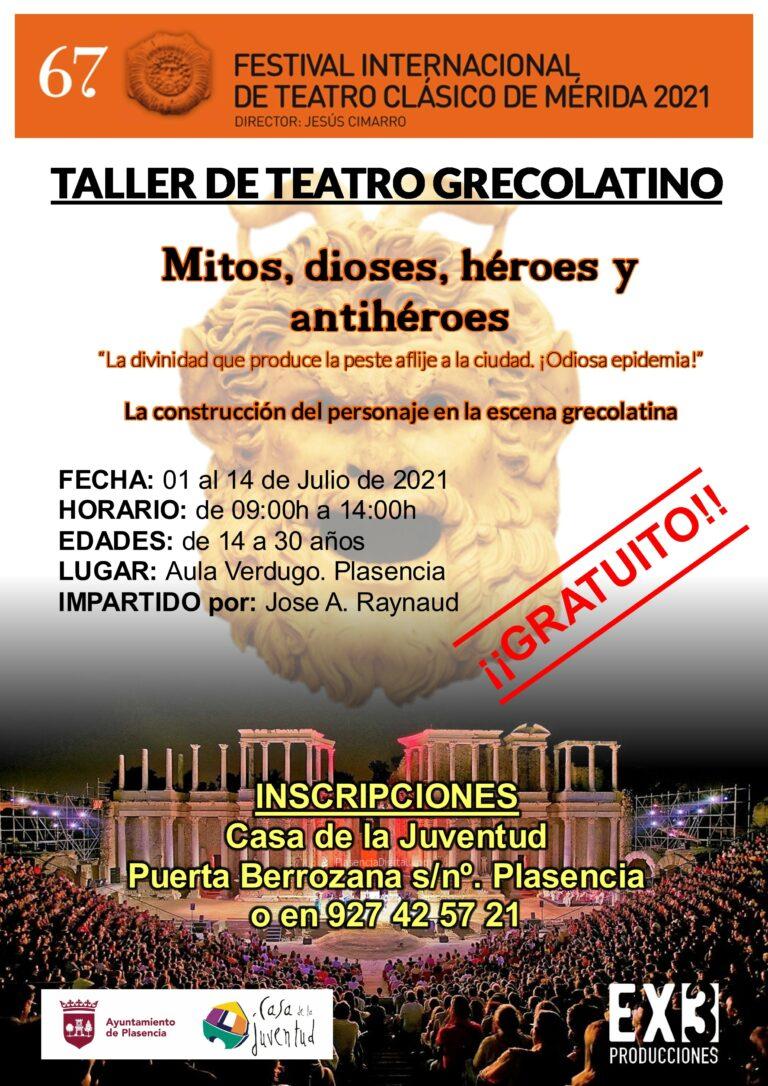 Abierto el plazo de inscripción al Taller de teatro Grecolatino ‘Mitos, dioses, héroes y antihéroes’ en Plasencia. Este taller gratuito está dirigido a personas con edades comprendidas entre los 14 …