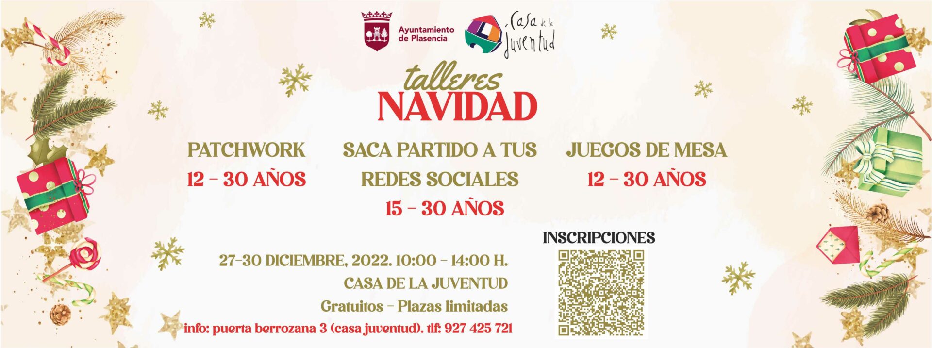 Durante los días 27 al 30 de diciembre se desarrollará en la Casa de la juventud de Plasencia unos talleres orientados a jóvenes de 12 a 30 años Patchwork y Juegos de mesa. Y para jóvenes de 15 a 30 años el taller Saca partido a tus redes sociales.
